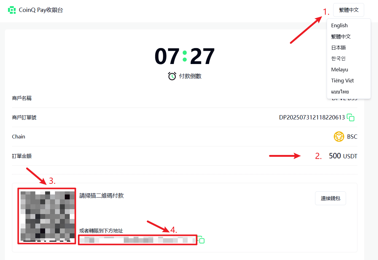 二、COINQPAY 入金通道教程