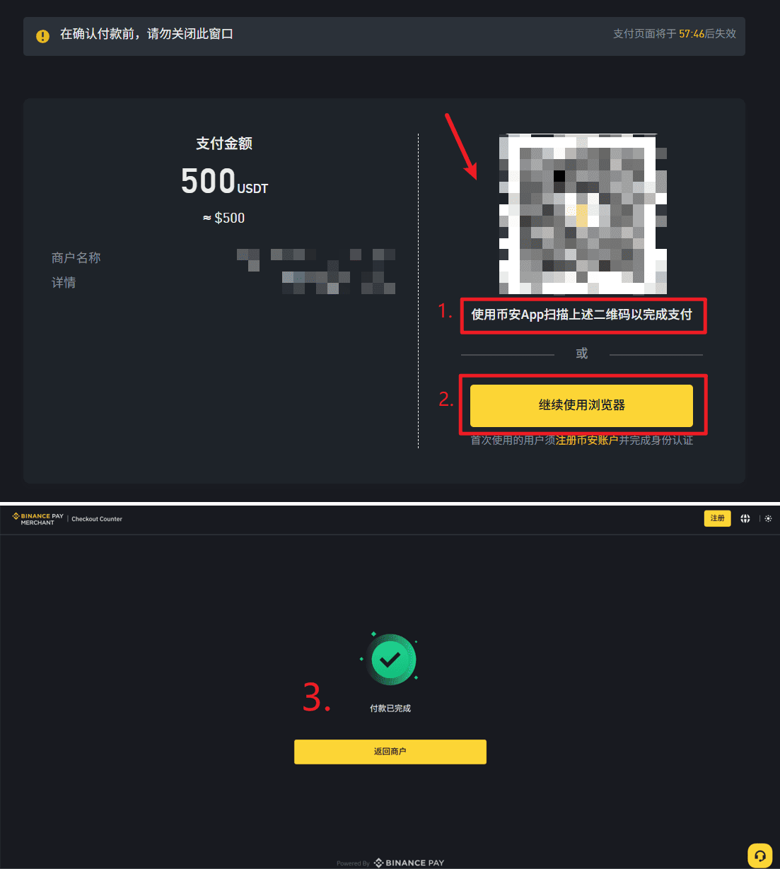 则是通过网页端登录币安账户完成支付