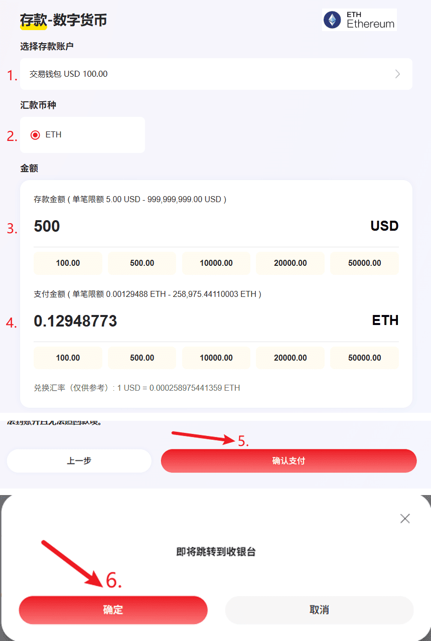 3、在存款金额处,填写您需要入金的数额
