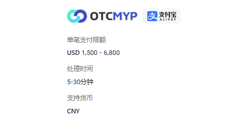 货币:CNY单笔限额:USD 1,500 - USD 6,800通道服务时间:07:00 - 01:00 (GMT+8)通道客服时间:24/7每日限額:无每日限額支付方式:支付宝备注:1.仅支持非新疆地区的入金。2.请用于实际付款人姓名相同的银行卡进行 ...
