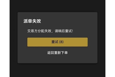 您好,如果入金的时候发现 支付通道页面一直提示 “交易方分配失败,请稍后重试!”,并重试多次都没有成功的情况,请1、调整单笔金额 之后再尝试,或2、更换其他在线通道尝试,或3、有数字货币钱包的客户,推荐使用 ...