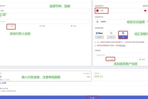 1、登陆陆Epay账户,点击【汇款、单笔汇款】→【选择付款和收款币种】→【选择提现方式】→【选择提现渠道】→【选择收款银行信息】→【输入提现金额】,点击【下一步】。提现到本地银行账户国际电汇提现2、确认订单 ...