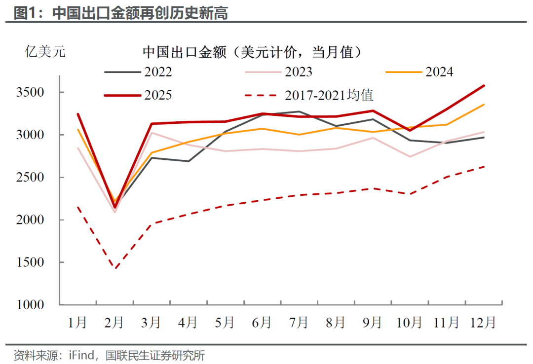 12月出口再度超预期,为一季度经济稳健开局释放了积极信号。在节前抢订单与工作日增加(较去年多1天)的双重驱动下,12月出口金额一举突破3500亿美元,创下历史新高;叠加贸易顺差维持高位运行,二者共同夯实了一季度经济“开门红”的基础。我们认为,短期内出口韧性有望延续,而进口修复进程相对偏缓,双重作用之下,高贸易顺差将继续成为一季度经济增长的重要支撑。