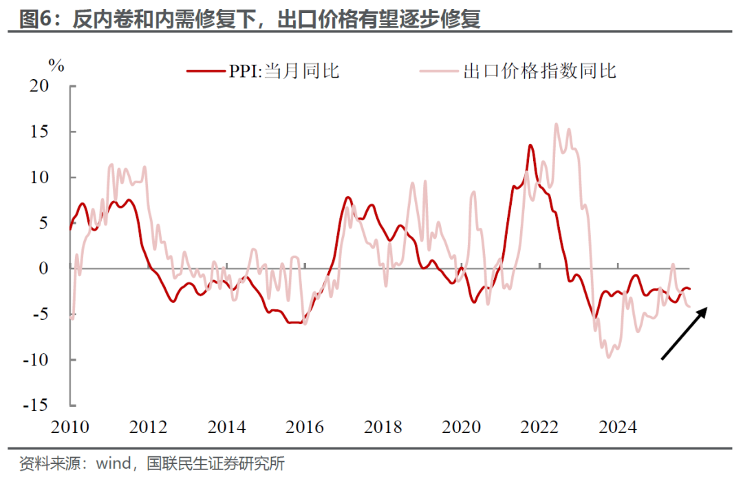 其三是出口量价的格局转化。伴随行业竞争格局优化与内需逐步修复,我国PPI与出口价格增速稳步回升,此前出口“量增价减”的格局有望在2026年逐步扭转,“量价同升”的积极趋势值得期待。