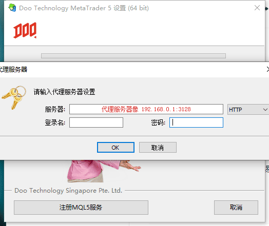 2、提示需要输入【代理服务器】 原因:提示您输入代理服务器的情况,通常是因为你的本地网络无法直接连接到MetaQuotes的官方下载服务器,程序试图让你通过代理来建立连接。常见于某些特定网络环境,也可能与本地设置有关,通常可以开启科学上网工具或者使用特定安装包。 解决办法: 1)参考上一个问题,右键安装包后,在【兼容性】栏目中,勾选【以兼容模式运行这个程序】和【以管理员身份运行此程序】后,点击【应用】再点击【确定】。 2)将 代理服务器设置 输入窗口关闭后在官网 重新下载最新安装包后在尝试安装,如果 MetaQuotes 已修复该问题,则会发布最新安装包使用。 4)如有科学上网工具,可以打开后再尝试安装。 5)上述办法都无法成功的情况下,请提供异常页面截图,联系 专属客服经理 协助处理。